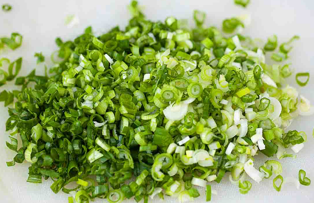 - In the meanwhile, wash and cut 8 sticks of green onion.