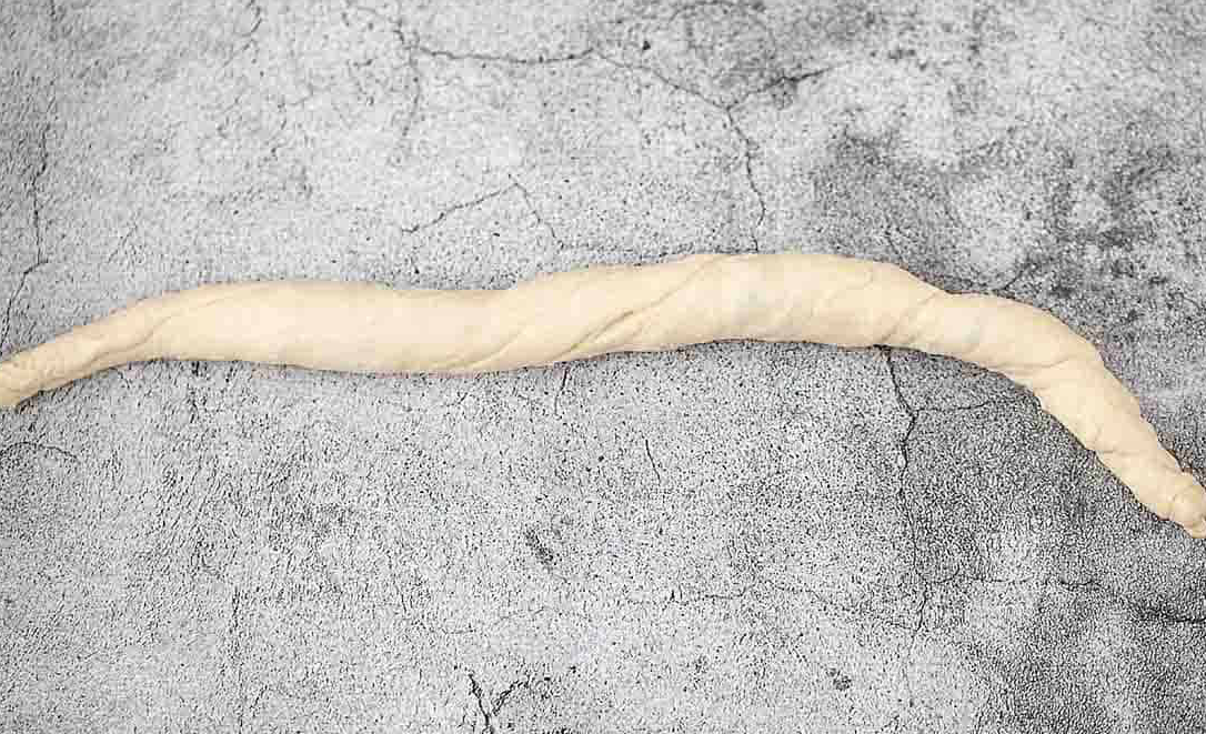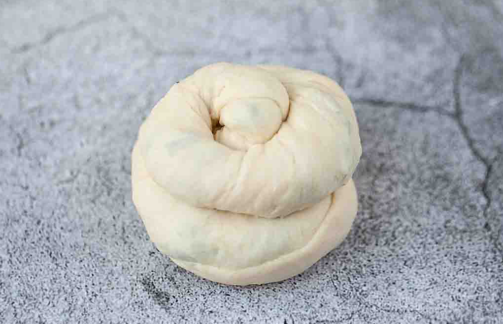 - Roll up the dough after putting salt and green onion. Then, twist and roll the dough a little bit. Then, roll up the ends and stack up. See the video below for details.